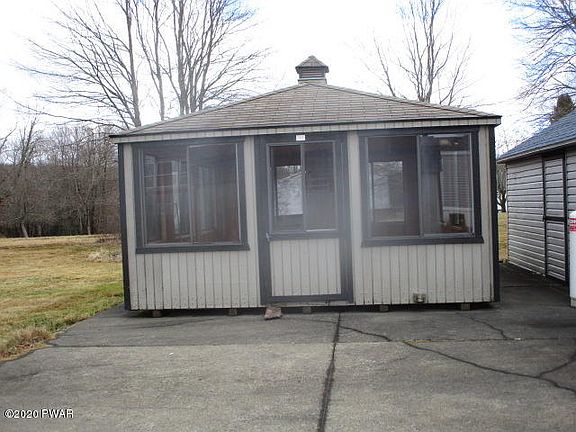 Come check out this well kept manufactured home in the North Pocono School District sitting on over an acre of land is ready for you to enjoy. Features include a master bedroom with a master bath, a pellet stove and a propane fireplace to supplement the forced air propane heat, two full baths, and a great room addition gives you even more room. A former pool house outbuilding is perfect for guest quarters, a gym, or a home office. You can relax on the screened in porch or in the outdoor gazebo. A one car garage rounds out this great property