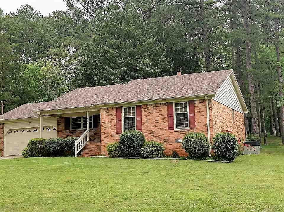 Nice 3 bedroom , 2 bath, 1500 Sq.FT., brick rancher on an acre. Fireplace, 2 car garage, deck, and a Large yard with mature trees.