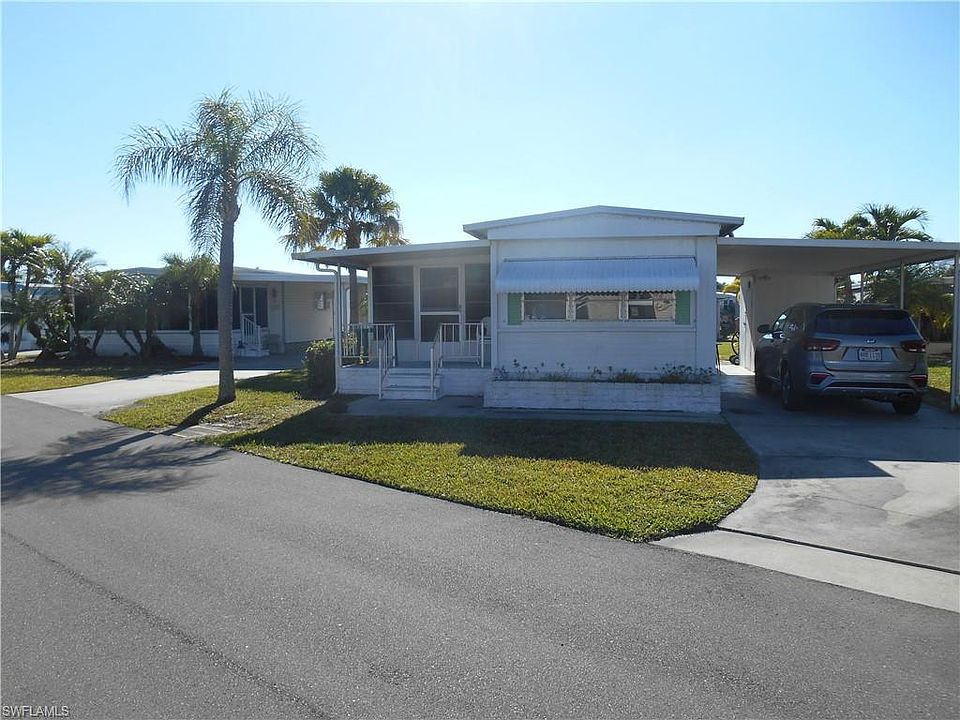 Nice one bedroom one bath home in a gated 55+ community. Home has approximately 624 sq. ft. plus an enclosed porch. Carport can easily accommodate two vehicles and leads to a shed which has storage space and washer with dryer. Home comes furnished and also has a bicycle 3 tricycles. Home is located in Orange Harbor and is accessed off of Palm Beach Blvd. which is exit 141 on I-75. Orange Harbor is conveniently located close to all shopping and has two boat launches and common areas to accommodate fishing or just relaxing watching the Manatee and wild life.