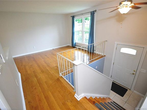 Wonderful open floor plan with living room open to kitchen and dining area. Beautiful hardwood floors in Living/Dining and hallway. Sliders open to deck and walkway to upper level yard perfect for quiet nights by the fire. Lower level boasts a large family room and full bath tastefully updated and with heated floors. Laundry area has storage not often found in raised ranches. Boiler only two years old. Roof, windows, garage door, patio door, all newer. Great commuting location - close to shopping and Route 8. No heat in lower level except heated floor in bathroom