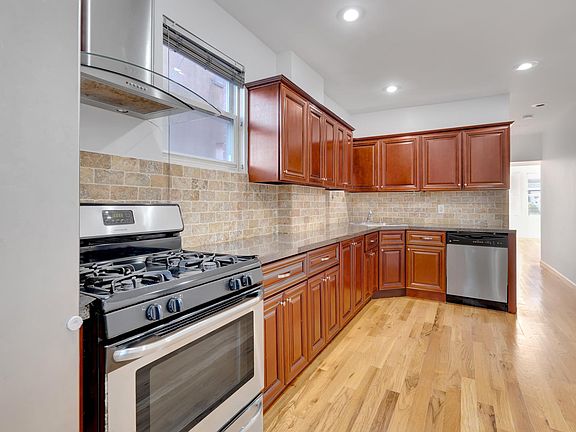 Welcome to this lovely first floor home thats is filled with lots of natural light from its many windows. The apartment is spacious, bright and has an open living and dining area. Completely redone kitchen, featuring SS appliances, granite countertops, tiled backsplash, cherry cabinets, and space for an eat-in area. Two large bedrooms, a good amount of closet space, and hardwood flooring throughout. A modern full bathroom, W/D in the unit, and one car parking in the driveway. The home's major feature is a private deck and large backyard, perfect for relaxing and entertaining. All of the utilities are included in the rent, with NYC transportation directly down the street. Close to restaurants, grocery, shopping and a few blocks from James J. Braddock North Hudson County Park. This home won't last! All of the utilities are included in the rent. Use Of Yard.