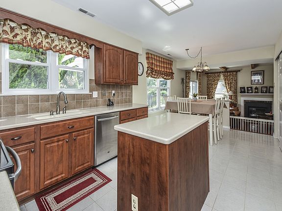 Welcome to this charming former model home in the sought after neighborhood of Yardley Oaks. As you enter the home there is a beautifully landscaped front walk and covered porch at the entry way. Enter into the warm foyer with hardwood floors which extend throughout the first floor. The living room is charming with crown molding and neutral colors. Dining room is perfect size for family dinners and holiday entertaining. The kitchen has oversized tile floor, tile back splash, corian countertops, stainless appliances, upgraded cabinets, and a large breakfast area. The expansive family room has gas fireplace and access to the oversized mud room just off the two car garage. The backyard is a true secluded oasis with koi pond, patio with retractable awning, pergola, and a beautiful private pool. The entire rear yard is private and fenced and also has a shed for additional storage. There is a full finished basement with additional storage space. Upstairs has an oversized master bedroom with beautiful gas fireplace and newly remodeled en-suite bath which includes soaking tub and large shower, large walk in closet, and a separate office space. Beautifully remodeled hall bath with upgraded white cabinets and countertop, oversized shower and floor tiles. There are three additional bedrooms that complete this floor. Award winning Pennsbury schools. Walk to dining and shopping. Easy access to 95 and Route 1 for commuting to Princeton, NYC, and Philadelphia.