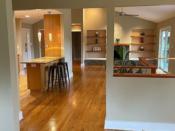 Magnificent waterfront property with panoramic views of the lake from this completely renovated custom crafted home. 2800 ft.² 3 bedroom, 2.5 bath open floor plan flooded with natural light. Hardwood floors throughout. All new GE profile stainless steel appliances. Custom kitchen with major cabinet space and granite countertops. Formal dining room and large Carolina room with wall-to-wall lake views. Central air, recessed lighting, two custom gas or wood-burning fireplaces with built-in bookshelves. Beautiful trek deck off living room overlooking landscaped grounds with sprinkler system, private boat dock, and small fishing boat. Perfect for Family fun and entertaining. Spacious master suite with custom adjoining master bath that includes a large whirlpool tub, enclosed frameless glass shower, dual raise vessel sinks and wall-to-wall mirror. Beautiful patio with concrete pavers on bottom level through walkout sliding glass doors. Laundry room on main floor with ample storage. Very large storage/workshop area attached.