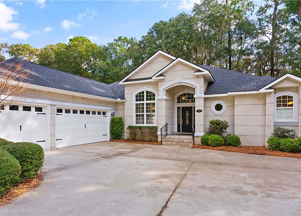 Welcome to 178 Rice Mill, a one-level sanctuary located on the prestigious King & Prince Golf Course on St. Simons Island in the gated community of Hampton Plantation. This unique, triple split 4-bedroom, 3-bath residence harmoniously blends comfort with the exclusive lifestyle of golf and marina access. Views of the green greet you upon entering through the formal living room, leading to a screened porch that invites relaxation amidst the island's natural beauty. The interior radiates sophistication with high ceilings, crown molding, plantation shutters, and abundant natural light, enhancing the home's spaciousness. The expansive primary suite offers a luxurious bath with a soaking tub and walk-in closet. Entertain in style with the formal dining room, or enjoy casual meals in the large eat-in kitchen with stainless appliances, open to a cozy family room with a fireplace. Recent updates include new roofing, LV flooring, neutral carpets in the bedrooms, and essential appliances, ensuring modern comforts within this tranquil retreat. The property concludes with a practical 3-car garage, providing ample space for vehicles and storage. Live where luxury meets leisure at this St. Simons Island haven, designed for discerning homeowners seeking a blend of privacy and community.
