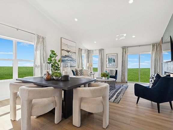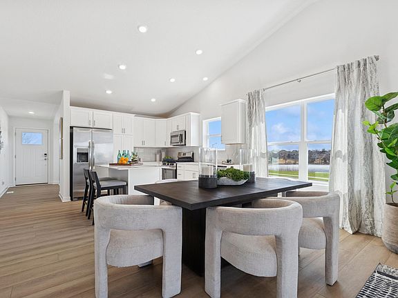 This model home in the Ridgeview Heights community showcases a thoughtfully designed two-story layout with modern style and flexible living spaces throughout. The main level features soaring vaulted ceilings in the Great Room and dining area, creating a bright, open atmosphere that flows seamlessly into the kitchen with a center island—perfect for everyday living and entertaining. A versatile flex space on the main level offers endless possibilities for a home office, playroom, or creative retreat. The upper level features a luxurious owner’s suite and two additional bedrooms, while the lower level includes a spacious recreation room and a fourth bedroom ideal for overnight guests or multigenerational living. Located in Elko New Market, approximately 30 minutes from the Twin Cities, Ridgeview Heights offers a peaceful, small-town setting with convenient access to local parks, shops, and unique entertainment options.