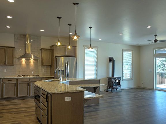 Don’t miss this fabulous custom home built in Priest River’s finest development, River View Ridge. No other floor plan like this one in the development, featuring 1545 sq ft -3bed 2 bath, with a spacious open great room design with fireplace. Beautiful kitchen set up for cooking & baking with double oven, gas cook top & an amazing breakfast bar. The master bedroom ensuite features a relaxing wet room shower for a spa experience in your own home. Granite counters in kitchen, baths & laundry room. Walk out on to your full length covered deck to enjoy spectacular mountain views, BBQ all year long and watch the seasons change. Wonderful landscaping including a spectacular hardscaped patio with modern gas fireplace and sprinkler system. Also included are the refrigerator, washer & dryer. Spacious 2 car garage.