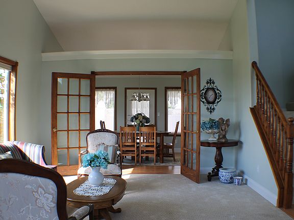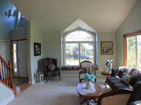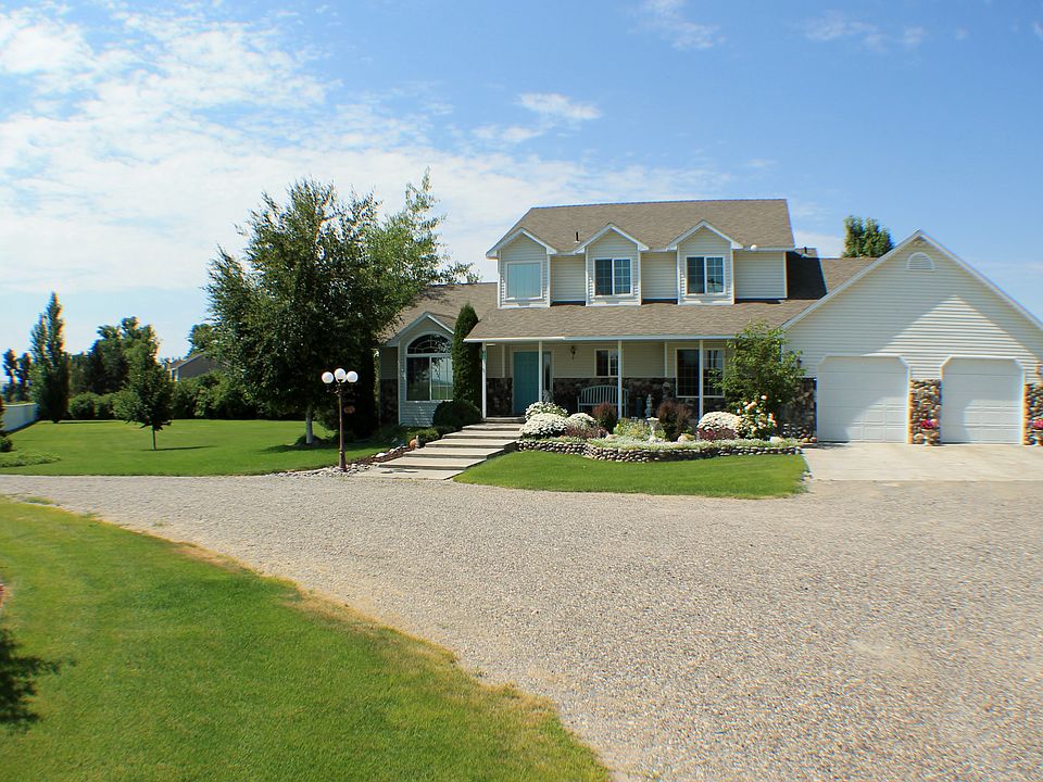 This wonderful country home features spectacular mountain and valley views. It is a custom built five bedroom with 3 1/2 bathroom home. There are 2 bedrooms upstairs, a full bathroom with a double vanity, the master bedroom with en suite including a soaking tub. The main floor includes: both formal Living and Dining rooms; kitchen, family room, laundry, half bathroom and office. The kitchen has new stainless steel appliances, beautiful granite counter tops and custom oak cabinets with lots of storage. The basement includes: large family room, 2 bedrooms, full bathroom, sewing/craft room, large cool storage room and lots of additional storage. There is Central propane heating, cozy gas fireplace and gas hot water; central air conditioning. Automatic sprinkler system waters the full acre. 30 ft x 50 ft shop has 220 electrical. Extra-large 2 car insulated garage has plenty of room for work bench and other items. Access to the covered 16x32 deck is available from both the kitchen and dining room. It has been newly painted, has new and finished solid oak hardwood floors and newly installed carpet. Mature tress for shade and beautifully landscaped with easy maintenance. Privacy white vinyl fencing in the front and solid wood fencing in back. It is completely move in ready!