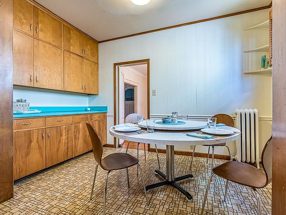 Spacious home with 3rd floor bonus area, tall ceilings, great millwork, large windows, built ins. Large eat-in kitchen newer appliances, separate laundry/mud room, 1 car attached garage & covered parking for 3. A double stairway/landing leads to 4 generous sized bedrooms and an upper balcony.
