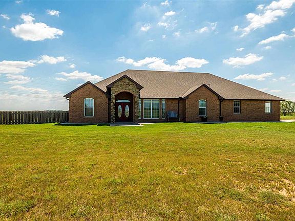 Have you been looking for a newer home with open floor plan, acreage and a 100Mbps connection! Look no further! This 3 bedroom, 2 1/2 bath home has the open floor plan and modern amenities. Welcome to your dream kitchen with knotty pine cabinetry, copper vent hood, slide-in oven, pot filler over stove, instant hot water dispenser at sink, a double wall oven and a HUGE pantry...just in time for the holidays. Large dining area for those dinner parties and an eat-in kitchen for casual dining. Owner''s ensuite is on one side of the home and features a large bedroom with doors leading out to back patio, built-in bookcase, and a chandelier. Ensuite bath is fabulous with whirlpool tub, stand up shower, double vanity, a water closet, and a huge walk-in closet complete with chandelier. The other two bedrooms are on the opposite side of the home with a shared bath between and a guest bath as well. Back patio is great for those BBQ''s and has a great view! There is a 4, yes 4 car garage. There is RV parking on the side, with a dump station as well as electric hookup. All doorways are wider than usual for wheelchair access. Storm cellar in backyard as well for safety from the storms. Seller will pay up to $5000 in buyers closing costs or pay down points with accepted offer. Call me or your Realtor to see this beautiful home for yourself! Kristy Brabaw, Parks Jones Realty. 580-583-8072