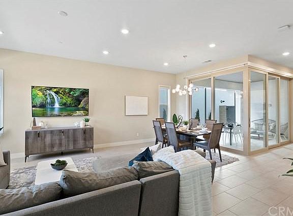Better than a model home and priced to sell. Totally upgraded DETACHED home with 3 spacious bedrooms, plus a large loft. This smart home is Located in the Great Park village of Irvine which offers many amenities including pools, spa, clubhouse. Large private outdoor covered California room with sliding custom glass doors to give you indoor outdoor living space. Gorgeous tile flooring throughout the entire first floor. Over $120,000 in upgrades to include custom auto shades, water softener, Japanese style rain shower with added water heater, custom counter tops and backsplash, built-in refrigerator, custom flooring in the California room. Walking distance to Candence park middle school (K-8th.), Portola Springs High School.