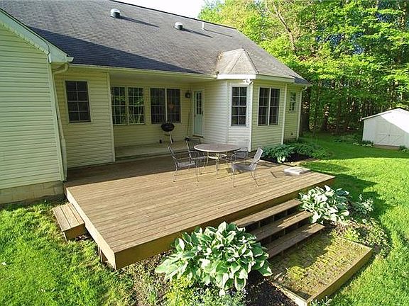 Enjoy your very own tranquil retreat this home has to offer. Step into the entry way that opens up to the spacious great room featuring Cathedral ceilings, hard wood floors and an abundance of light coming trough the light tubes. Enter into the Dining area with ceramic flooring. Kitchen boasts Hickory cabinets and stainless steel appliances. Laundry room and half bath. Large master bedroom with spacious master bath featuring double vanities, jetted tub and separate shower. Additional full bath for the other 2 bedrooms. Full high basement could be used for great storage or future game room or family room. Large deck over looking private back yard. 16 x 20 shed for storage.