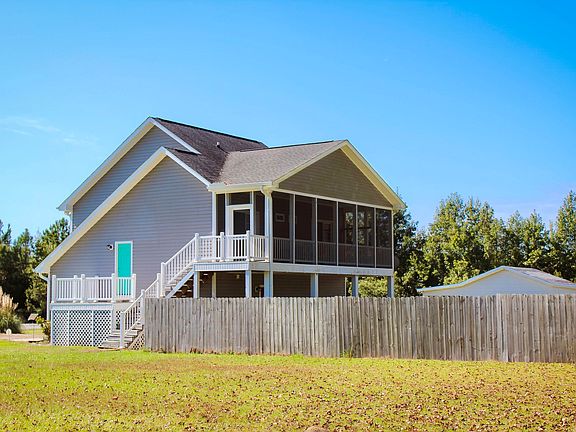 Looking for privacy and acreage? You've come to the right place! This adorable ''beach house'' is waiting for you! This 2 bedroom, 2.5 bath, coastal style home, has lots of storage. As you enter, the 2 story foyer features storage area as well as access to the 2 car garage. Walk upstairs to the large open living space. You'll be amazed how much light shines in the wall of windows. As you walk towards the Master Bedroom, notice the built-in bookcases. Both the master bedroom and second bedroom feature sliders that lead right onto the screened back deck, where you can have your morning coffee! As you head back downstairs, you'll find a large laundry room with 1/2 bath, as well as an additional space you can use as an office, storage or possibly another bedroom. Outside you'll see there is plenty of storage in the workshop and shed. Need a place for your pets to play...the backyard is fenced in! This property also includes the additional .62 acre lot next door. Come and enjoy the serenity that awaits! Property being sold ''As Is''. Property is approx. 25 min. from Ocean Isle Beach!