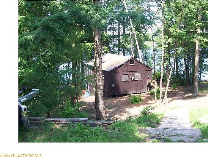 Classic Maine camp with 100 ft. of frontage on Sebago Lake Basin. Nicely wooded lot with sandy beach and dock.