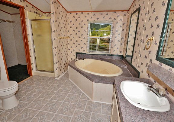 PRICE REDUCTION Beautiful 3 bd/2 ba triplewide all electric manufactured home with mountain view is on a permanent foundation. Home has a large livingroom and den with a woodburning fireplace. Separate diningroom, huge kitchen w/ plenty of cabinet space, master bedroom w/ garden tub and shower and enormous walkthru closet. Two other splitplan bedrooms also have walkin closets. Stereo system throughout house. Home is within walking distance of town of Andrews yet in the county so you won't pay any City taxes but you will have City water. Back yard is fenced and has storage building for your mountain toys and lawn equipment. Lovely hedges line both sides of level grassy lawn is private.