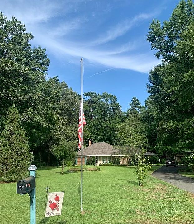 This spacious home is situated on a quiet cul-de-sac, east of Many, near Many High School. This well maintained property is great for entertaining. It features a warm and inviting great room that is centered by a wood-burning fireplace with a wall-to-wall hearth and built-in storage. Wood beams line the vaulted ceiling and two double French doors lead to a multilevel deck with an attached covered patio overlooking a lush wooded area. Another great feature is the split bedroom floor plan -- separating the roomy owners on one side of the living area from the other two bedrooms and bath. The roomy owners suite has a double vanity and walk-in closet. The beautiful yard is lined with azaleas, bridal wreath, gardenias, roses, redbud, wisteria and other flowering shrubs. A nice-sized storage shed is wired and has a spare refrigerator for extra storage.