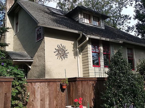 Back on the market due to their inability to secure financing. Craftsman bungalow directly across from Lake Pine with amazing year-round lake views from almost every room; amazing natural light throughout the home. Situated on a fully fenced (50% red cedar) 2-level corner lot with off street parking and low taxes. One of the original 4 homes built in Lake Pine for city dwellers to summer. Offers historic charm with modern amenities that include 95% efficient NG furnace and central air (2011), original pine floors, NG fireplace, public water/sewer and new paint inside and out. Kitchen features include SS fridge and top of the line Viking prof. series NG range and microwave with lots of cabinet space. An open floor plan in downstairs living & dining room with a heated and cooled enclosed sunporch. The upstairs master features stunning lake views with skylights, ship lapped walls/ceilings and an addt’l room for an office, nursery or whatever you desire. The house sits high on a “bone dry” unfinished full basement with W/D; accessed by an interior stairway. Perfectly landscaped terraced yard with established gardens and a huge matching 2-story “he AND she” shed with lots of storage. Just a 2 min. walk to the beach with swimming, canoeing, and fishing – as well as a clubhouse for parties plus tennis and basketball courts. NO HOA FEES! Optional membership to join the Lake Pine Colony Club for lake & recreational grounds use for $325. annually; maintenance membership $275. annually. Mortgage pre-approval/proof of funds needed
