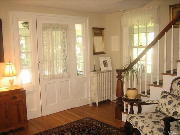 Antique Colonial Farmhouse Gracefully updated with the charm of the old days. Open floor plan, bright sun filled rooms. Newer roof and most windows. New 200 amp Electrical, New Baths. Gleaming Hardwood floors. Beautiful Stone Fireplace in Liv Rm. Granite Kitchen open to Dining Rm and Living Rm. 4 Spacious bedrooms, lots of closets. Finished walk up attic Large wrap around front porch plus private deck. Park like 2 acre level lot includes beautiful spring feed pond,2 story Barn, 2 car garage plus large shed. Beautifully landscaped with Many Perennial gardens and mature plantings. A Rare Find.