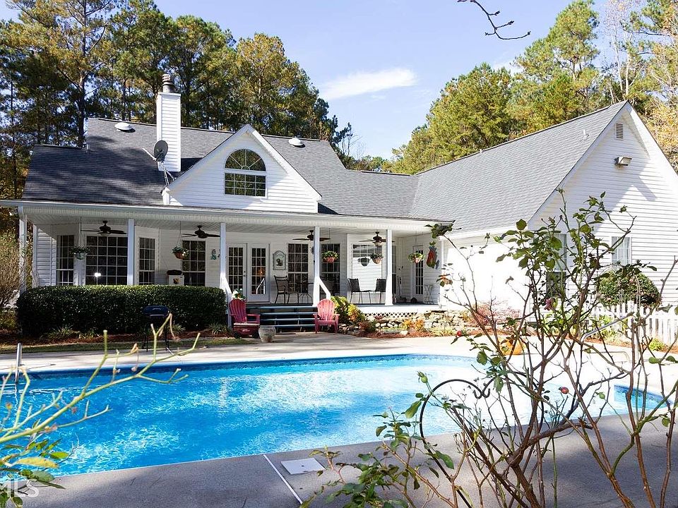 Quite Country Setting . Minutes to I85. Relax on your Rocking chair Front porch or on the large back covered porch overlooking your In ground pool and your Koi Pond. Hardwood floors. Fenced back yard also a dog run. Living, kitchen, breakfast area all open with a fireplace. Located on 3.340 private acres. Home is very well maintained. Large Master bath with double sinks. Large den with its own fireplace. This home is a must see !