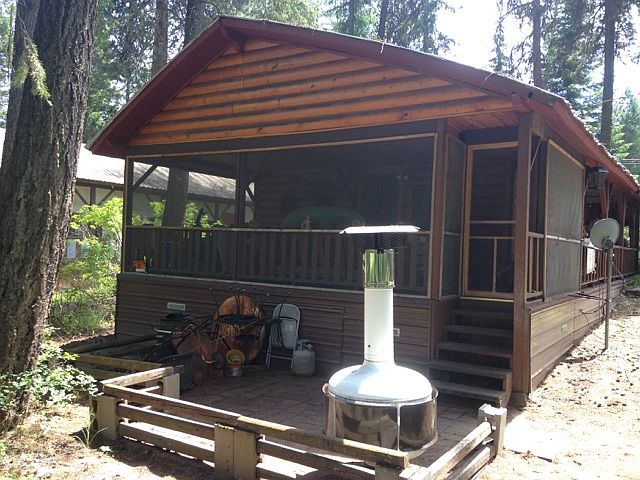 Beautiful rustic cabin at Hartman's Log Cabin Resort outside of Inchelium, WA. This is a travel trailer that has been built around with log siding. It also has a steel roof, which was installed in 2002. Approximately 1.5 hours from Spokane. If you like quiet and a beautiful lake, which is some of the best trout and bass fishing in the Northwest, this is the place for you. This home has a drive around driveway to entertain guests and park. The reason it's remarkably low in price and negotiatble is because it has some minor water damage that occurred last year. The floors in kitchen need modified and it'll be good to go for another 40 years.