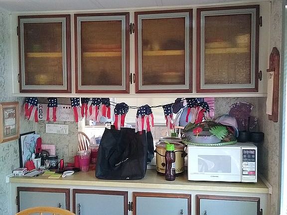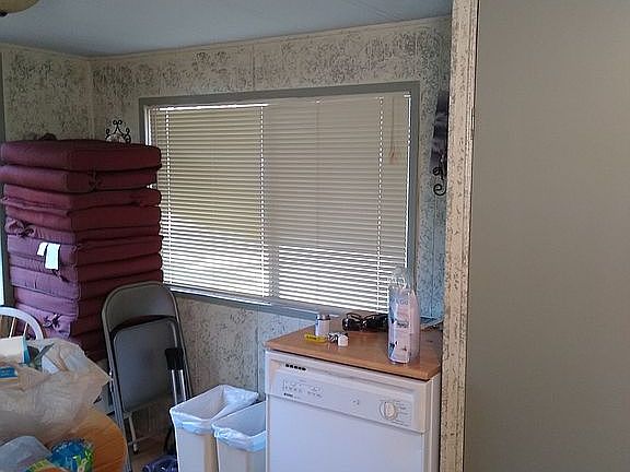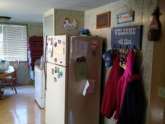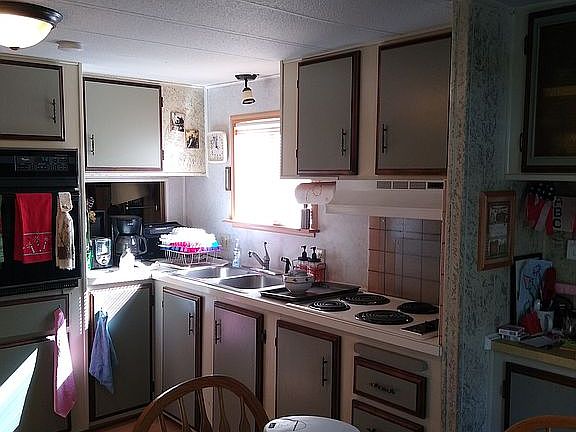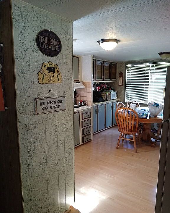 Fully furnished mobile home on leased lot in Log Cabin Resort on Twin Lakes. Large covered porch with attached golf cart garage with automatic door. Exterior could use some TLC, interior is nicely remodeled with 2 bedrooms and 1 large bathroom. Laundry in master bedroom closet to save space in bathroom.