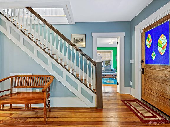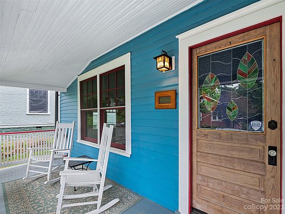Situated in an amazing location moments away from downtown Asheville, this exceptional home in Montford offers convenience, style, and an array of modern amenities. Preserving the historical charm, the house was completely restored, and features heart pine floors and a front porch with unique posts and pickets. The front door showcases a stained glass panel crafted by a local artist. Natural light floods the home through skylights enhanced with electric shades. The stylish kitchen is equipped with top-of-the-line Thermador appliances. Other notable features include locally sourced reclaimed barn beams, two working fireplaces, solar panels, and an instant water heater. The fenced backyard is adorned with river rocks, and an array of vibrant flowers; a retractable awning over the back porch creates an ideal setting to unwind and host gatherings. This home harmoniously combines modern amenities, historical charm, and thoughtful details, creating an exceptional living experience.