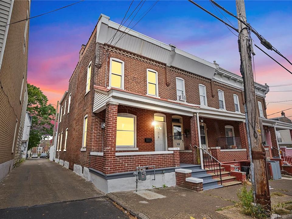 Charming 2-story end of row in Center City Allentown. The main floor offers an open-concept living and dining room with new wide plank hardwood floors and high ceilings. The kitchen features tile floors, recessed lighting, quartz countertops, an under-mount sink, and a refrigerator. A convenient laundry room with new vinyl flooring and a toilet is also on the main level. The second floor includes a master bedroom with new carpet, a ceiling fan, and high ceilings, along with two additional bedrooms, also with new carpet. The full bath is updated with tile floor, quartz countertop, and a tub/shower combo. Additional features include new drywall, recessed lights, efficient gas heat, gas hot water, gas cooking, new replacement windows, new wiring and new plumbing. Newer roof. Enjoy a covered porch, fenced yard, and easy access to public transportation and the PPL Center.