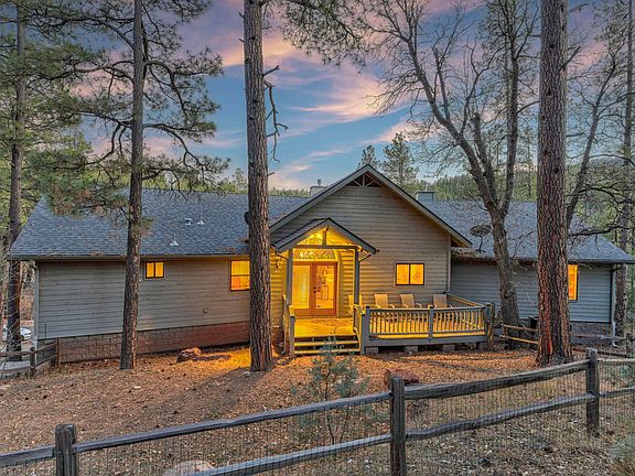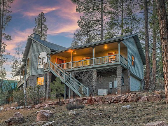 Come Discover this Magnificent ''Lofty Retreat'' in Hunter Creek Ranch - A Highly Desirable Gated Community in Arizona's Majestic ''Rim Country.'' This Beautiful Luxury Cabin Home offers Spectacular Mountain Views from TWO Covered Front Decks that are perfectly oriented on this nearly ½ Acre Hilltop Setting. You will say WOW when you enter the Big Open Great Room and behold the Fantastic Views from within and the Stunning Floor-to -Ceiling Cultured Stone Fireplace. This Open Living Area features Tall, Arched, View Windows, Bright Wood Flooring and High Vaulted Wood Ceilings. The Amazing Open Kitchen has travertine Flooring, a Kitchen Island with a BIG Breakfast Bar. The Spacious Main Bedroom is split from the other two nice big bedrooms on the main floor. It is a Private Sanctuary with its own Beautiful Fireplace, Double French Doors that open to your own Covered Balcony / Deck (With Fantastic Mountain Views) Wood Floors, Vaulted Wood Ceilings, A Roomy Bath / Walk-In Closet Area, Travertine Tile, a Stained Glass Privacy Window, a Jacuzzi Tub and a Separate Shower. Downstairs features another Hobby / Office / Potential Bedroom and a Spacious Workshop Room with a ½ bath and access to the extra wide and long two car garage. There is also a deck out back with a split-rail / wire fenced area, AND this home has a big generator for emergency power. There is no place like Hunter Creek Ranch. It is surrounded by Magnificent Mountains Tall Pines, and National Forest Land. It has winding paved roads, underground utilities, an excellent water source, a community sewer system and custom homes that are strategically separated to provide a feeling of seclusion and privacy throughout. The annual HOA fee includes sewer, water, and road maintenance. There are numerous nearby hiking trails, mountain streams and six picturesque Rim Country lakes. Come experience some Real Tranquility amid the Whispering Pines and Clean Fresh Mountain Air. This ''Lofty'' Sanctuary could be your ''Great Escape'' that you have been searching for. Don't let this Opportunity Pass You By!