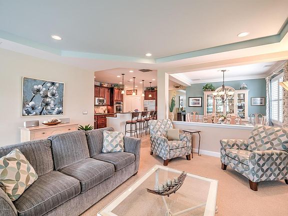 EQUESTRA:SIMPLY PUT ''COMFORTABLY SPACIOUS'' HAWTHORNE MODEL. Professionally landscaped entrance walks you through the stone front columns, dressed with stone/siding facade. Entering the hardwood floors adorned with crown moldings, library to the left, oak stairs leading up to 2 bedrooms and a office. The kitchen adjacent to the tray ceiling dining room wrapped in wainscot, boast 42'' maple rouge cabinets, granite countertops, SS appliances,4 stool breakfast bar, including double door pantry. The family room with a corner fireplace, mirrors 3 large windows to keep it bright. The master bedroom with tray ceilings, finished walk in closet, m/bathroom has a soaking tub with a seated seamless glass shower stall. The approximate 500 sq' paver patio with firepit and awning for those cozy nights!