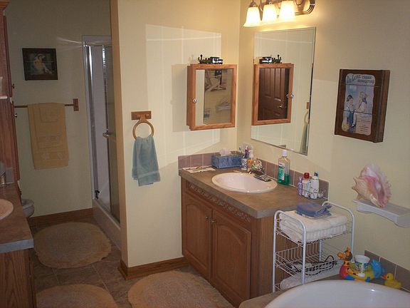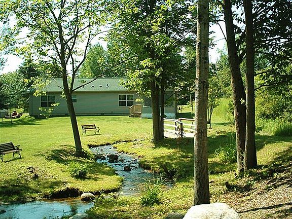 Has natural gas heat,central air, city sewer and trash, and well. Oversized two car garage with loft and power door opener. Master bath has double vanities, soaker tub, seperate shower, and lots of storage. Inside laundry room with laundry tub and built-in ironing board. Kitchen has bay window, garden window all appliances, and large island. Home has laminate flooring,wood blinds, and large screened porch overlooking a spring fed stream and further back is the Tobacco river. Call 989-588-7170 for a viewing.