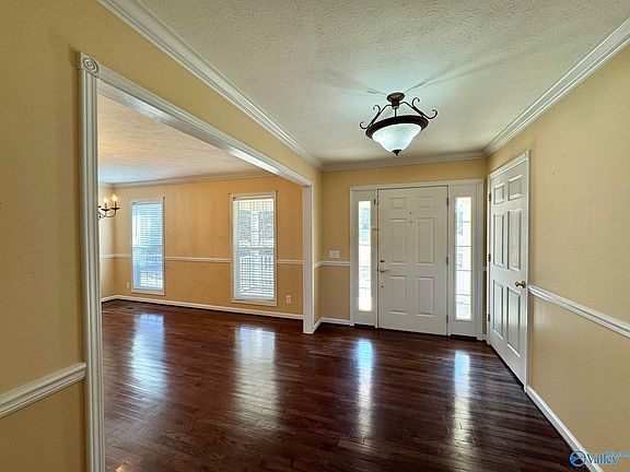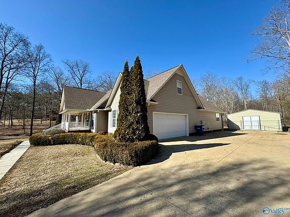 Sitting on approx. 2 acres in Albertville city limits, this spacious home offers 4 Bedrooms / 3.5 Baths, a split floor plan, and stunning vaulted ceilings. The kitchen has granite countertops, an island, stainless appliances and Formal Dining area. The Living room features gas logs and Palladium windows, leading to the screen porch and fenced backyard. The master suite includes a jetted tub, separate shower, and walk-in closet. Upstairs offers a large bonus room and suite featuring a bedroom, bath and 2 walk-in closets. Attached 2 Car garage, 20x24 shop with power, and separate storage building. Large fenced in backyard, nice trees and privacy in a great location!