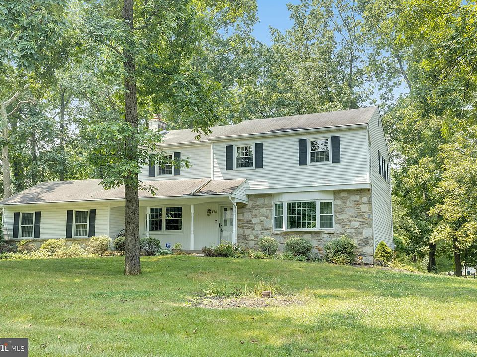 In the rolling countryside of Bucks county sits 178 Willow Lane.  A colonial home nestled amongst mature landscaping on just over an acre creating your own home oasis.   Highlighting the front of the home is a stone facade accent along with a large covered front porch perfect for enjoying the morning sun or afternoon wildlife.   Stepping into the home, you will find a bright, slate entryway with sunkissed hardwood floors sprawling across much of the first floor.  Flanking the front entrance are the large living room & family room each with an abundance of natural light and a stone fireplace creating a charming focal point in the family room. Flowing through the living room, you will find yourself in the spacious dining room with chair rail accent, bay window & centered chandelier.  Hosting family dinners has never been easier with the kitchen just off the formal dining space.  The kitchen boasts an array of features including convenient recessed lighting, butcher block island, wall oven and microwave, an abundance of countertop space and cabinets galore.  The eat in section of the kitchen creates everyday use simplicity.  The slider off the kitchen leads to the expansive deck overlooking the large level yard. Enjoy the year round use of the three season room off of the family room where you can enjoy every angle of the wall to wall window wrapped space.  Completing the first floor is the private laundry space with wash sink and additional storage.  Making your way upstairs you will find the primary bedroom with a newly renovated ensuite bathroom including tile flooring, tile shower & large vanity.  Three additional bedrooms with hardwood flooring complete this floor each with a large closet and the hall bathroom centrally located for convenience.   The large unfinished basement is an open space for you to create an area of your own or  it can simply be used for additional storage. The whole house generator provides protection and peace of mind in all weather. This home has been connected to public sewer and public water for worry-free utilities. The neighboring shopping, parks and entertainment allow for modern conveniences while living away from the hustle and bustle of everyday life.  This home has been well loved and is looking for its next owners to create memories! Schedule your tour today.