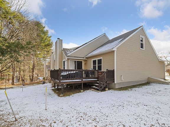 Welcome to this updated 3-4 BR townhome in the desirable Century Village of Londonderry. This unit has so much room that it feels like a single family home. The modern kitchen is light and bright with tons of cabinets, granite counters and stainless steel appliances. The new flooring throughout the main floor is light and maintenance free. The primary suite is on the first floor for those who do not want to climb stairs. There is also an office on the first floor next to a beautifully renovated bathroom which could also double as a guest suite. The dining and living area are open concept which is great for entertaining. The living room does contain a wood burning fire place for those chilly NH winters. The second floor has two good sized bedrooms and a completely renovated bathroom. The skylights add extra light and character to the rooms. Open the sliders from your living room onto the very large deck for some outside enjoyment and grilling. There is also a very large basement which could be easily finished if you needed the extra space or can be used for storage. The association is currently switching over to city water and sewer. Enjoy all the amenities that the Association has to offer including the pond, walking trails, pool, clubhouse etc. This location is convenient to shopping and restaurants but feels like you are outside of the city.