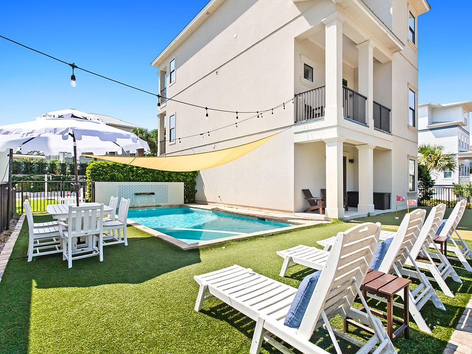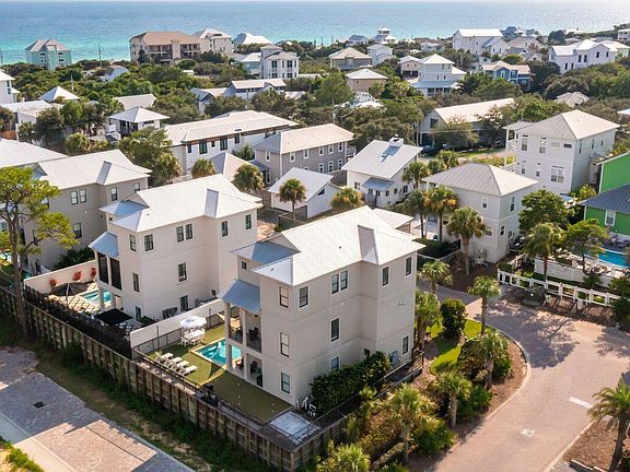Embrace refined coastal living--and a premier investment opportunity--in this luxury residence on an oversized lot along the coveted west end of 30A. A stately columned facade, ample parking, and inviting porches set a timeless tone. This three-story home, accessible by private elevator, offers six spacious bedroom suites, including three on the main level. The second floor features an elegant open-concept living area with hardwood floors, formal dining, and a beautifully appointed kitchen. The third-floor master retreat boasts sweeping west-facing sunset views. Outdoors, enjoy a private pool, spa, tanning ledge, and wrap-around putting green. Just a short walk to Dune Allen Beach and minutes from Gulf Place, Grand Boulevard, and Santa Rosa Golf & Beach Club.