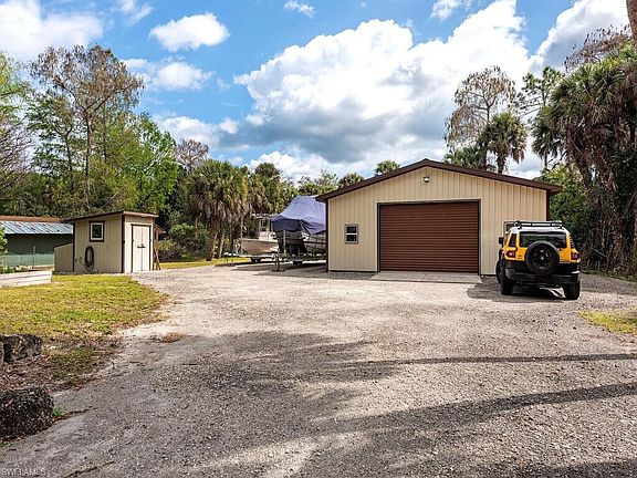 23rd Street SW is a phenomenal and convenient location close to downtown Naples. This 3 bedroom plus den ranch styled pool home sits on a beautifully cleared lot loaded with fruit trees. Boasting a 900 square foot pole barn built in 2015 and outfitted with plumbing and electric, raised storage shelving, reverse osmosis water filter. A spacious deck shaded by mature trees leads to a screened saltwater heated pool. The home has been well maintained and has a new roof in 2022. A paved circular driveway leads to a cleared area out of view. Perfect for boat and RV storage and outfitted with electric hook up. There is an assumable VA loan at 3.5% for approximately $308,000 available to a qualified buyer through Rocket Mortgage.