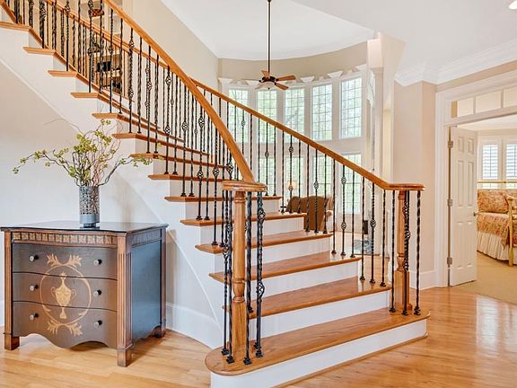 Multiple offers received! Stunning brick home in sought-after, gated Stonebrier has everything you've been looking for! A grand curved staircase flows to the light & bright family room with custom built-ins, gleaming hardwoods & a wall of windows. The kitchen is a chef's dream complete with large island, granite counters & butler's pantry. The master suite is a true retreat featuring spa-like master bath, sitting area & huge bonus space. Unfinished terrace-level can be customized for added space. The expansive deck overlooks the serene, private backyard. 3-car garage!
