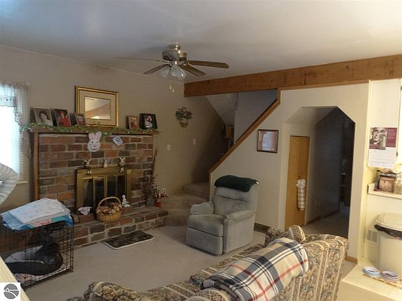 This unique home is built in the Carriage style sits on a nicely wooded lot, with naturalized places in the yard, on a quiet Cul De Sac. Watch the wildlife on your large multi-level deck, with outlets, and the newer steps take you down to an extra parking/play area. Its a 2 bedroom now but could easily be a 3 or a 4 with a bath upstairs in the unfinished storage area on the 2nd floor. The newer Septic System can support the addition, at 1000 gallons and was recently installed. Roof is about 10 years old. The doorwall off the Master enters onto a very private area that would be great for a nice sitting area or a hot tub, just needs a little landscaping on the hill. The Well is at 95ft, was checked out last year and a switch replaced. The gorgeous fireplace in the L/R draws your eye and can heat most of the home, but needs alittle work on the flew or converted to an insert. All appliances stay except for the microwave. Some newer Anderson windows and doors.