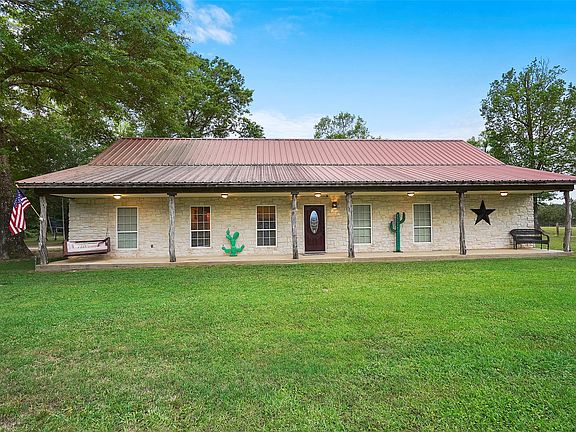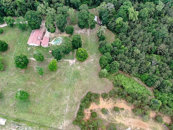 Gated Entry - Ranch Style Austin Stone Home Features 4/2/2 home situated on 10.332 Acres. Entry Hall opens to the Open-concept living/dining/kitchen areas. Island Kitchen offers SS Appliances. Primary Bedrm + Bath with Walk in Closet off Living Room 3 add'l bedrooms + Upstairs game room/bedroom/ it has a closet. Living Room offers Austin Stone Fireplace with a Wall-of-Windows to view the Beautiful Acreage! Stained concrete flooring throughout Carpet in the Bedrooms and Partial in Living Room. Beautiful in ground pool and hot tub with a big water-slide and dive rock. Storage /Workshop + 2-car Carport- Fenced and Crossed Fenced for Horses + Barn. Make your Private Appointment Today!