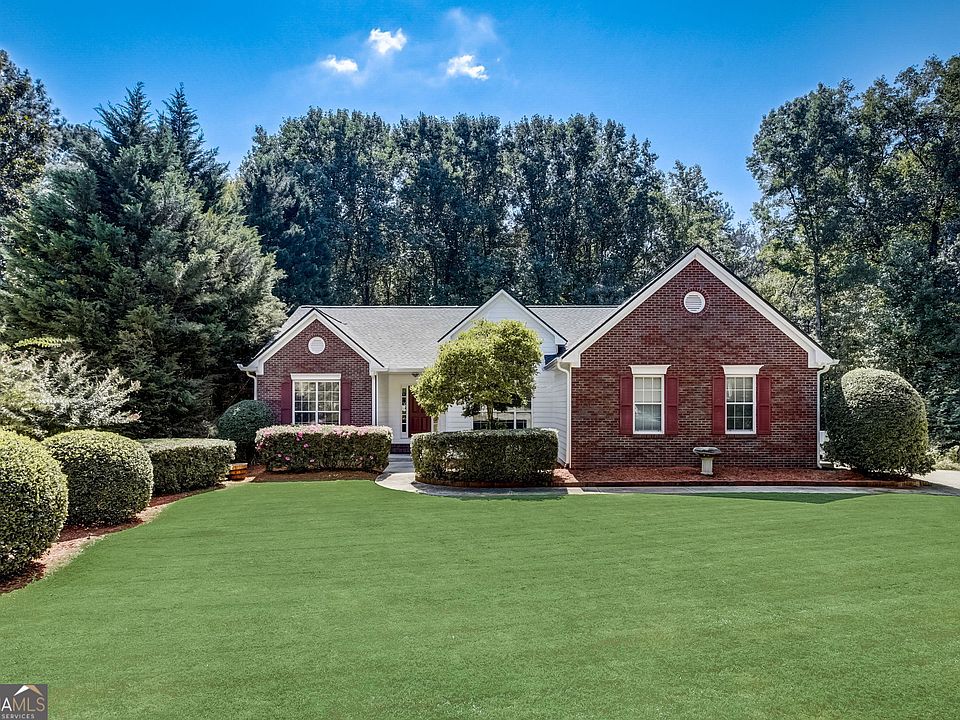 Incredible ranch home in Buford that's a MUST SEE! Brand new deck, finished basement with separate entrance and kitchen for an in-law suite, movie theatre room, massive driveway for RV or trailer storage, the list goes on! Located in a quiet no cut through neighborhood and cul de sac in Huntington West. As soon as you step inside you are greeted by a formal foyer with views into the dining room and fireside family room. Fireside family room has tall vaulted ceilings and leads to the eat-in kitchen. Kitchen has white cabinets, stainless steel appliances and views into the backyard. BRAND NEW DECK installed this month is ready for cooler weather and entertaining. Primary suite is well sized with a walk-in closet & custom shelving, double vanity bathroom and separate tub/shower. Two more well-sized bedrooms make up this ranch home and share a full bath. Downstairs includes a FULLY FINISHED basement that could easily be a perfect in-law suite. Tile floor in the kitchen, full bathroom, bedroom, access to the backyard, HUGE gym and a work room with garage door leading to the backyard for extra storage. Store your boat, bikes, or lawnmower. Movie room in the basement has movie theatre seats, projector and all the fixings for year-round use and enjoyment. Brand NEW Hot Water Heater, NEW ROOF, HVAC serviced in July... this house is move-in ready and looking for new owners to call home! Minutes from Hamilton Mill Golf Club, Little Mulberry Park and Duncan Creek Park. Plus, easy access to major highways, restaurants, grocery stores and so much more!