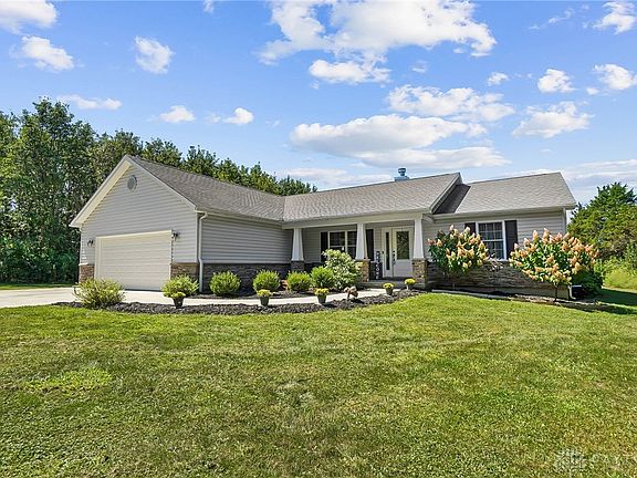 3BD 2BA home with approx. 2,020 sqft of living space with a 2-car attached garage and covered front porch nestled on a wooded 5 acres. From the entryway step into the living room area that has a fireplace. The kitchen has stainless-steel appliances, granite counter tops, island, and a window overlooking the wooded backyard. From the kitchen step into the dining room. The dining room has great natural light and has a patio door that leads you outside. These rooms have great natural light and cathedral ceilings. Perfect space for entertaining and gatherings. There is a bonus room that could be used as an office or family room. The owner’s suite has tray ceilings, and an en-suite full bath that includes a double vanity, bathtub, and walk-in closet. There’s also 2 additional bedrooms and 1 full bath. Laundry room with closet for additional storage. Step outside to enjoy cookouts and outdoor entertaining in the private wooded backyard that has 2 patios, and plenty of room for play. Conveniently located near shopping, restaurants & recreation. *Virtually staged for possibilities*