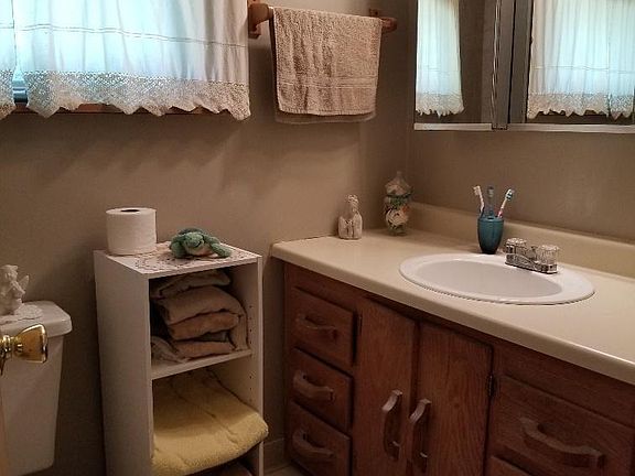 Two bedroom, one bath home with a multi-tiered deck with beautiful wooden staircase/path leading up from lower parking area. Situated on a nicely wooded lot in a quiet Cul De Sac. The home could easily be changed to a 3 bedroom by converting the attic space across from the upstairs bedroom. Loads of potential. The home has some newer windows, roof and siding replaced in 2006. Well was repaired in 2001 and 2006. Drainfield was new in 2016. Fireplace built out of bricks from different places, very unique. You need to make your appt today before this one gets away.
