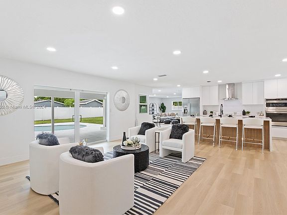 Open Concept House. The power of the transformation. It took 2 months to turn this charming house into a cozy space with a chic, modern, and practical touch. This style is characterized by simplicity, functionality, and connection with nature-family, using a palette of neutral colors, such as creams, beige, contrasted by the elegance of black, creating a unique and modern, fresh, and clean environment. Premium features, including S.S Appliances, Exotic Quartz Countertops, Cabinets, among others. Roof 2024, A/C less than 5 years old, impact windows and doors, PVC Fence around the entire property, Marble throughout the terrace, connecting with the pool deck and side walkways. New diamond brite in the pool,NEW water proof floor, situated on a serene cul-de-sac, two car garage