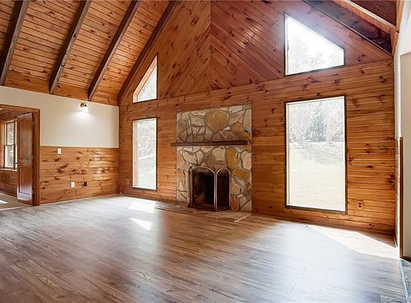 Rare find in Fort Mill Log Cabin on 2 acres. This home has a 2 story family room with a loft. 4 bedrooms or bonus/flex rooms, 3 bedrooms on the main floor and 1or 2 in the basement. Basement would make a great in-law suite! Large deck with woods for privacy to enjoy the outdoors. This home has new windows, roof, HVAC, flooring (carpet, laminate wood,tile), paint, kitchen cabinets, appliances including washer and dryer! Move in ready just waiting for a family to call this treasure their home. Pond is man made and part of the property.