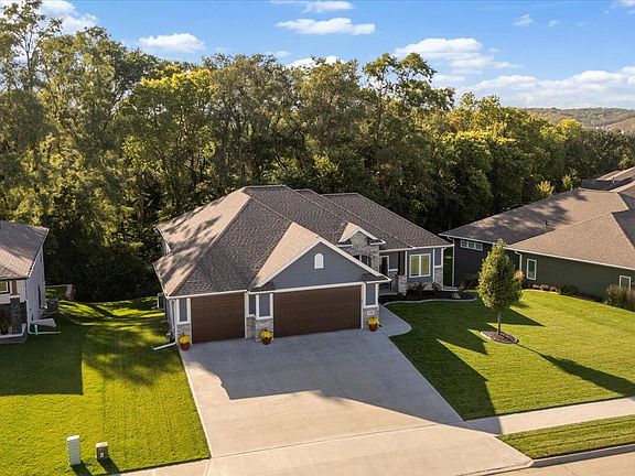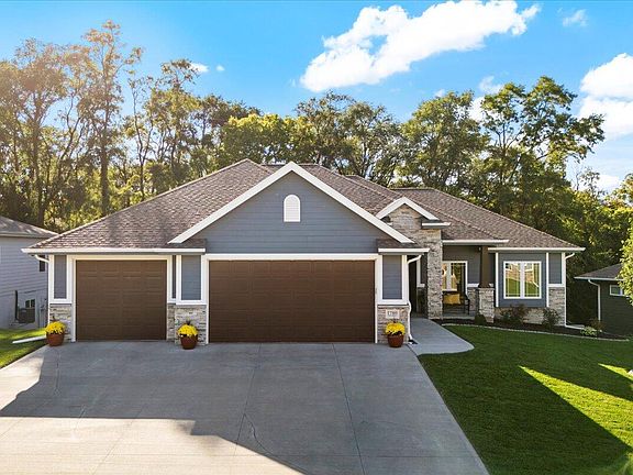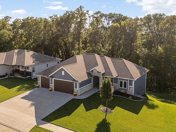 No need to wait for new construction. Check out this meticulously maintained 0-entry ranch home nestled within Whispering Oaks. The home is situated on a wooded quarter acre lot with no houses behind it, offering ample privacy. Its expansive open floorplan ideal for entertaining, features 6 bedrooms, 4 bathrooms, and a 3 car garage. Notable highlights include a mudroom drop zone, main floor laundry adjacent to the primary closest, a large pantry, covered porch, hardwood floors, and granite countertops throughout. A spacious lower level showcases a second living room and entertainment area with wet bar that walks out to a covered patio. There is so much to appreciate about this beautiful home, come and see it for yourself!