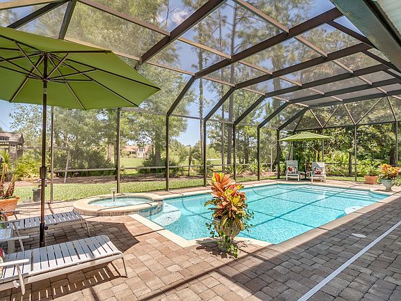 This exquisite custom built Rosewood home is located in the gated River Hills Reserve community and is a must see for any discerning buyer!The home features beautiful hardwood floors, custom crown molding, custom window treatments & extensive architectural details throughout.The 2 story family room has stunning custom hardwood paneled wall with built-in art & book shelves. The home features a gourmet kitchen has 42''cherry cabinets, granite counters,stainless appliances w/gas range, butler's pantry,large breakfast area, office and first floor guest suite.There is a beautiful 15x30 screened salt pool with built in spa,paver decking and amazing golf course views on an outstandingly landscaped lot. The master suite has sitting area, double doors leading to lanai, his & her walk-in closets,