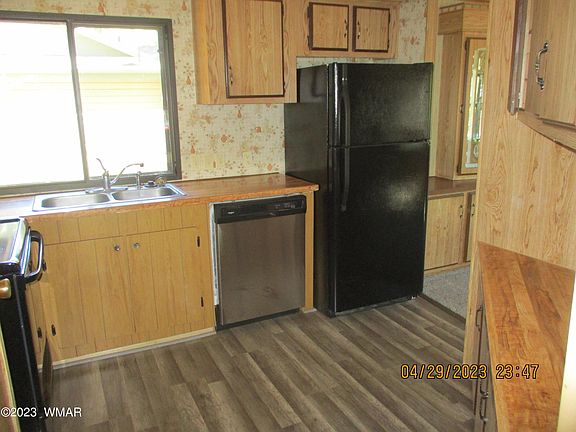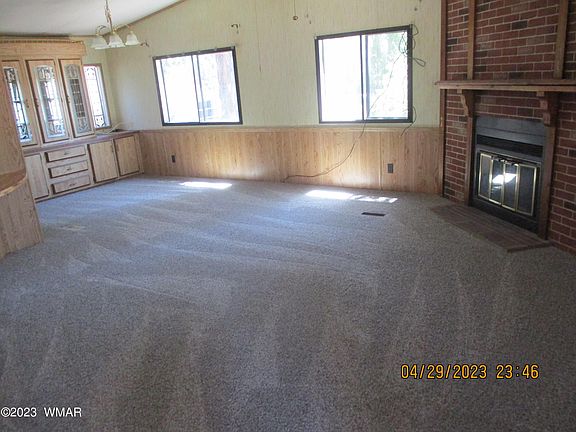 Location, Location, Location!!! As-Is Opportunity to make this your home or Investmnt project. Two bedroom two bath manufactured home with new carpeting, two add-ons, vaulted ceilings and fireplace on a nicely treed lot near Show Low Park.
