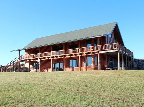 LIKE A LOG CASTLE IN THE SKY! A stunning 24.5 acre hilltop setting with approx. 1300 feet of winding Chippewa River frontage, provides the dramatic setting for this magnificent 4928 square foot. Golden Eagle Log Home. There is an open concept kitchen, dining, living room that is light and airy with views to die for, with the surrounding French doors leading to a wonderful wrap around patio deck. The numerous amenities include 4 bedrooms, 4 baths and fieldstone fireplace.