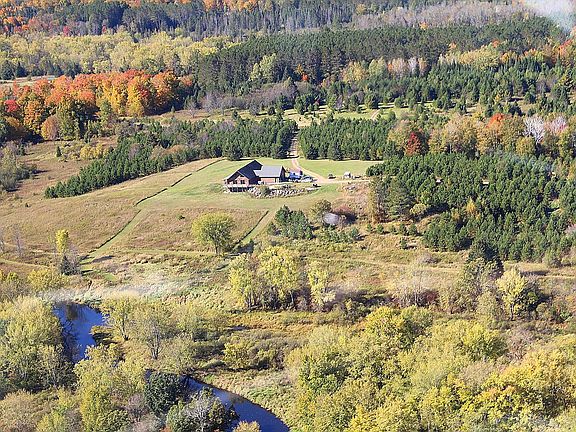 A Picturesque 24.5 Acre Hilltop Site with approx. 1300'+/- of winding Chippewa River Frontage, provides the Dramatic Setting for this 4928+/- sq. ft. Golden Eagle Log Home. There is an open concept kitchen, dining, living room that is light and airy with views to die for, with the surrounding French doors leading to a wonderful wrap around patio deck. The numerous amenities include 4 bedrooms, 4 baths, fieldstone fireplace, huge bedrooms, master bedroom suite, walkout lower level with an awesome bar rec room, lower level outdoor patio, attached 2 car garage, a pretty breakfast or coffee nook, & circular firepit patio. You are nestled in a nice pine plantation, & there is a great walleye hole offering superb fishing along the frontage. The house & property needs a little cleanup & some minor cosmetics, but Opportunity Knocks, as this house is priced at $254,700.00 below assessed Fair Market Value!!!