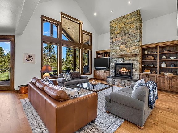 Experience the perfect blend of quality and lifestyle in this 2017 built Sunriver retreat. From the moment you walk in, floor-to-ceiling windows frame panoramic views of the Woodlands Golf Course's 17th green with surrounding pond and 18th tee. Every detail reflects meticulous craftsmanship: knotty alder solid doors, Jeld-Wen wood windows, engineered hardwood floors, and 100% undyed wool carpets. The main level offers a spacious primary suite with spa like bath, private office and an entertainer's chef's kitchen that flows seamlessly into the large dining space. Upstairs, two additional bedrooms (one with an en suite bath) and a large bonus room provide flexibility for family, guests, or fitness. Oversized three car garage, low maintenance landscaping, and access to Sunriver's renowned amenities make this home as practical as it is beautiful.