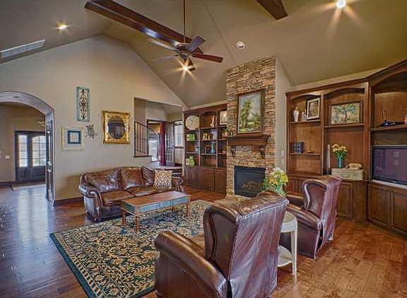 STUNNING home in Deer Creek Schools! Open floor plan, gourmet kitchen w/ granite, SS appliances, pantry! Living w/ stacked rock fp, wood floors! Study w/ wood floors. Elegant master w/ separate vanities, seasonal closet. 4th Bed upstairs can also be used as a bonus room. Media rm w/ projector. Newer carpet, paint, wood floors. Sec system w/ cameras. Surround Sound system. Heated Pool w/ waterfall & hot tub. Storm shelter in garage! OPEN SUN 2-4
