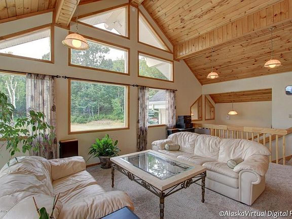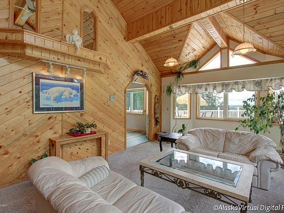 Fantastic 2692 sf home in desirable low wind area. 180' hillside view of 3 mountains and city lights. Massive deck for entertaining. Step across street to hiking and horse trails. New carpet and LVP flooring on main level. Vaulted ceilings in kitchen,dining, and living room, feature T&G knotty pine. Lots of natural light and privacy. Oversized garage and storage room for your toys.